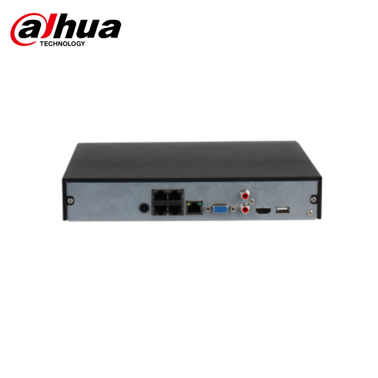 شامل چهار پورت PoE برای اتصال دوربینها، یک پورت SATA برای هارد دیسک، دو پورت USB برای اتصال دستگاههای جانبی و یک پورت شبکه RJ45 برای اتصال به شبکه.