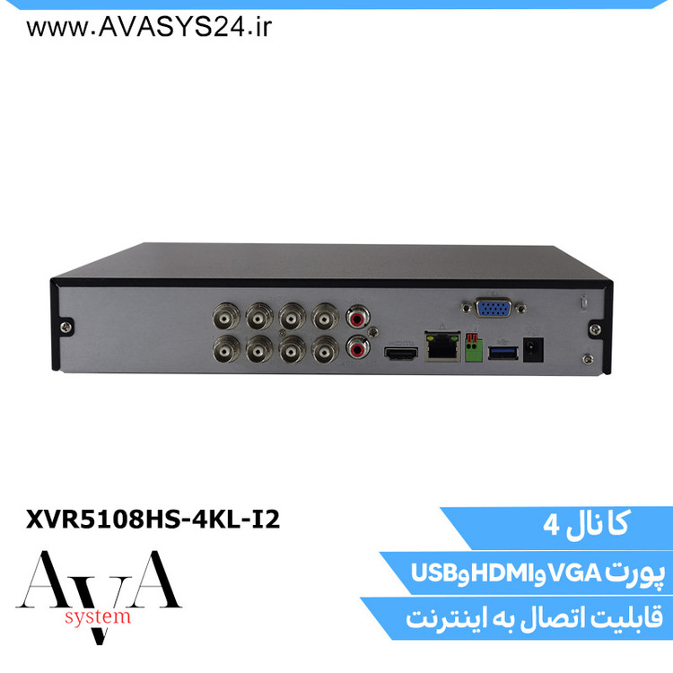 دستگاه DH-XVR5108HS-4KL-I2دارای ۸ پورت ورودی تصویر (BNC) و ۱ عدد ورودی و ۱ عدد خروجی صدا (AV)