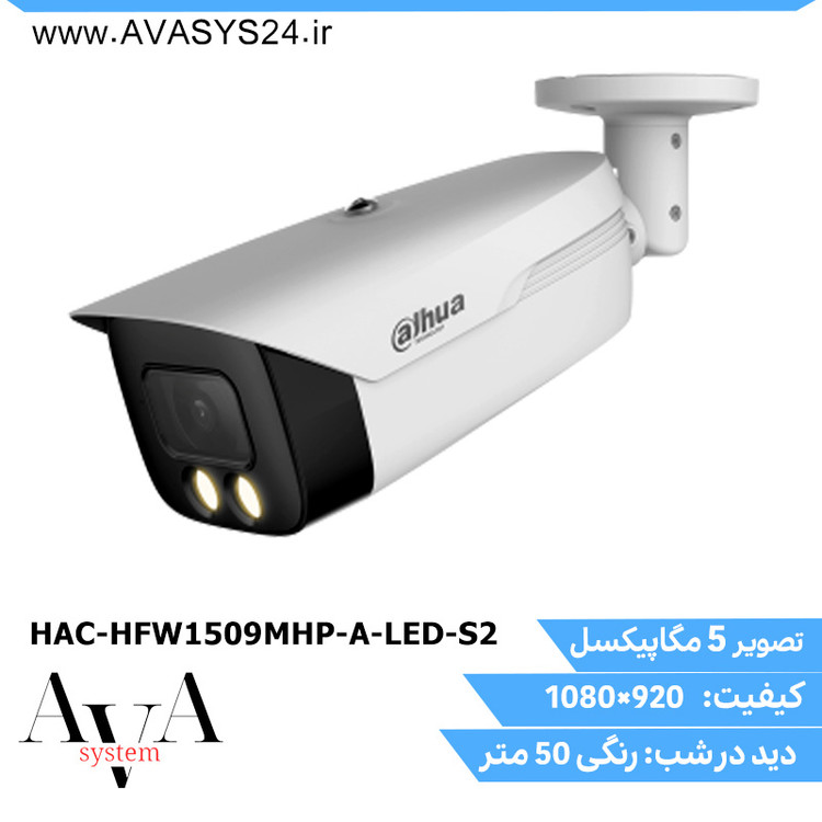 دوربین مدار بسته داهوا مدل Dahua HAC-HFW1509MHP-A-LED-S2 از سری محصولات برند معتبر DAHUA میباشد. تعداد پیکسلهای افقی این دوربین 2880 پیکسل و عمودی 1620 پیکسل میباشد. حاصل ضرب این 2 عدد در هم کیفیت 5 مگاپیکسل تشکیل میدهد. ولتاژ ورودی این دوربین بین 10 تا 14 ولت است. HAC-HFW1509MHP-A-LED-S2 جریان مصرفی برابر با 1 یا 2 آمپر از نوع جریان ثابت DC و مصرف برقی برابر با ماکسیمم 4 وات را نیز دارد. نحوه اتصال دوربین داهوا مدل HAC-HFW1509MHP-A-LED-S2 به دستگاه DVR از طریق کابل کواکسیال یا ترکیبی (RG59) به متراژ حداکثر 300 متر و از طریق فیش BNC میباشد.